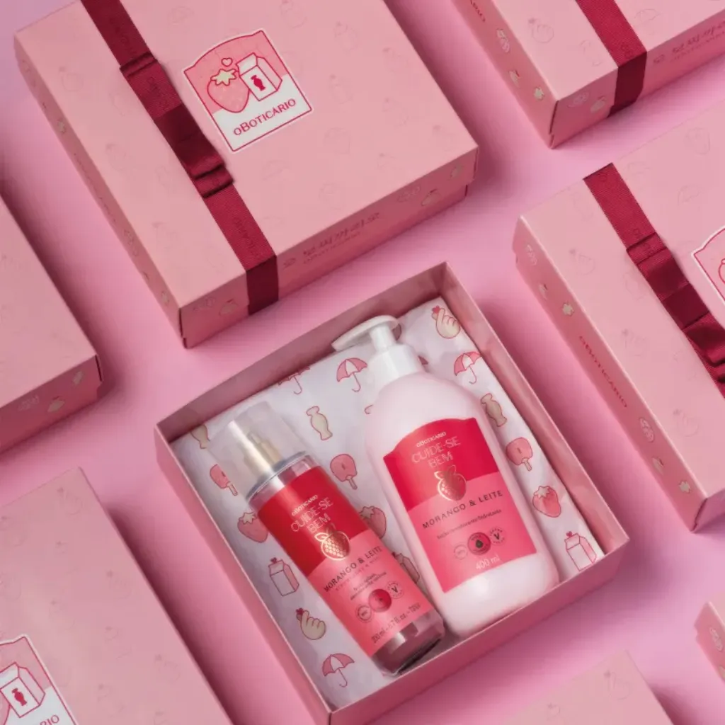 Kit Cuide-se Bem K-Drama Morango e Leite O Boticário – Edição Limitada com Caixa e Adesivos